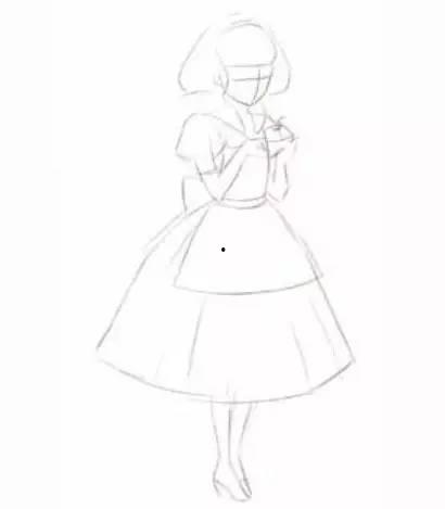 细节决定成败,这句话在绘画中同样适用。现在,我们要为公主的服饰添加一些细节。比如,裙摆上可以画出一些褶皱,上衣的领口可以画出一些蕾丝花边。此外,别忘了画出她的头发,可以是长长的波浪卷发,也可以是简单的马尾辫,根据你的喜好来决定。